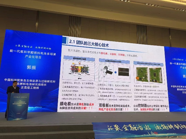 2026年3月17日,在青岛市政府,青岛市金融办组织的青岛市全生命周期科技金融高质量发展会议上,课题组长郭振教授以题目《新一代氢和甲醇燃料电池多场景产业化》为主题,做产品推介路演报告,讲述醇类燃料电池研究组产品及未来融资计划。青岛市市长任刚,青岛市副市长耿涛等出席大会。